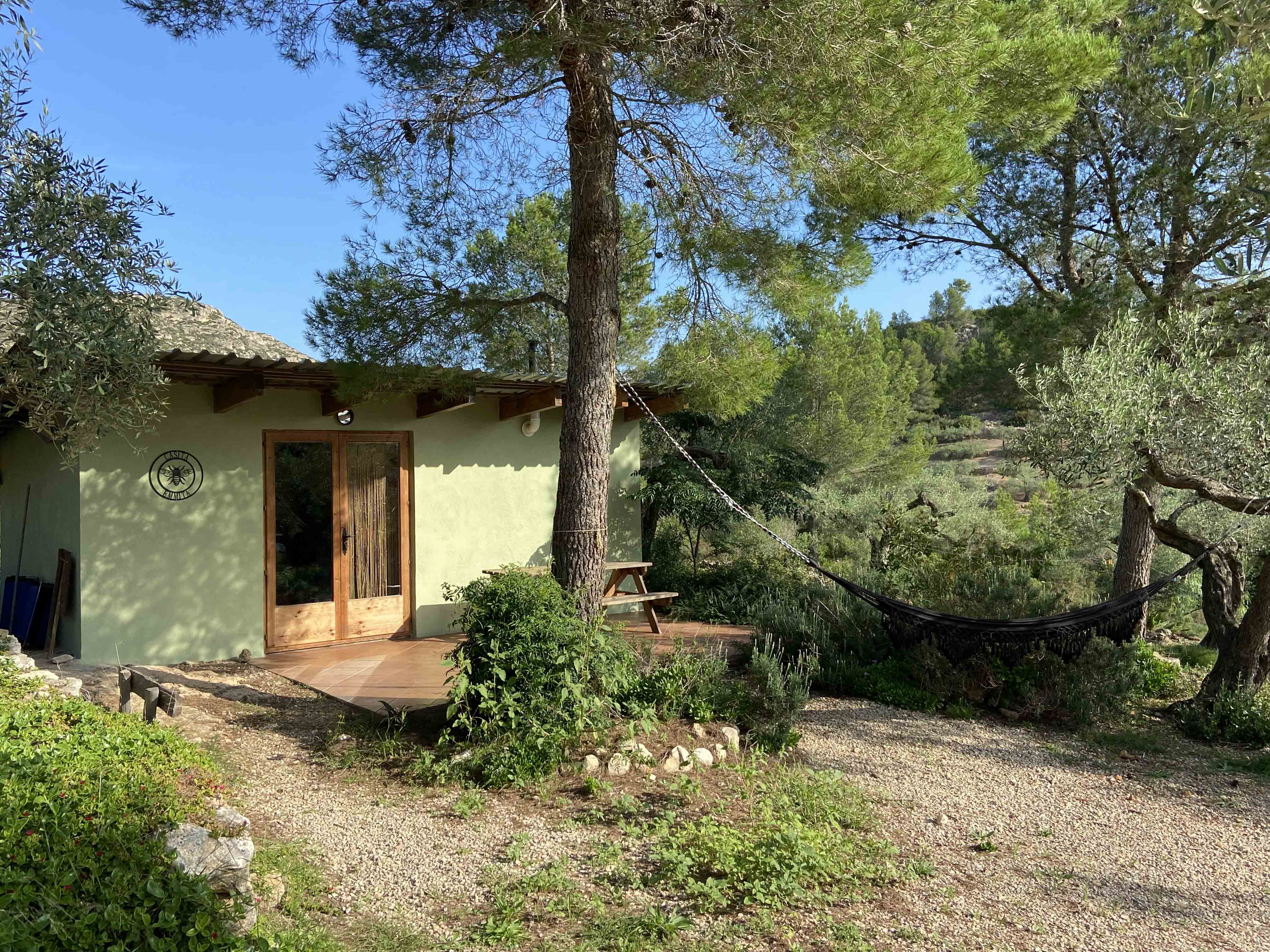 Finca Emmita is 10 mins drive from El Perelló and 20 mins from the sea, we are in the middle of a valley, with no neighbours or roads nearby. All you can hear is the sound of silence. The finca is 100% self-sufficient. It is solar powered, we collect rain water and the grey water is recycled to water the vegetable garden and plants. We offer also high speed internet.